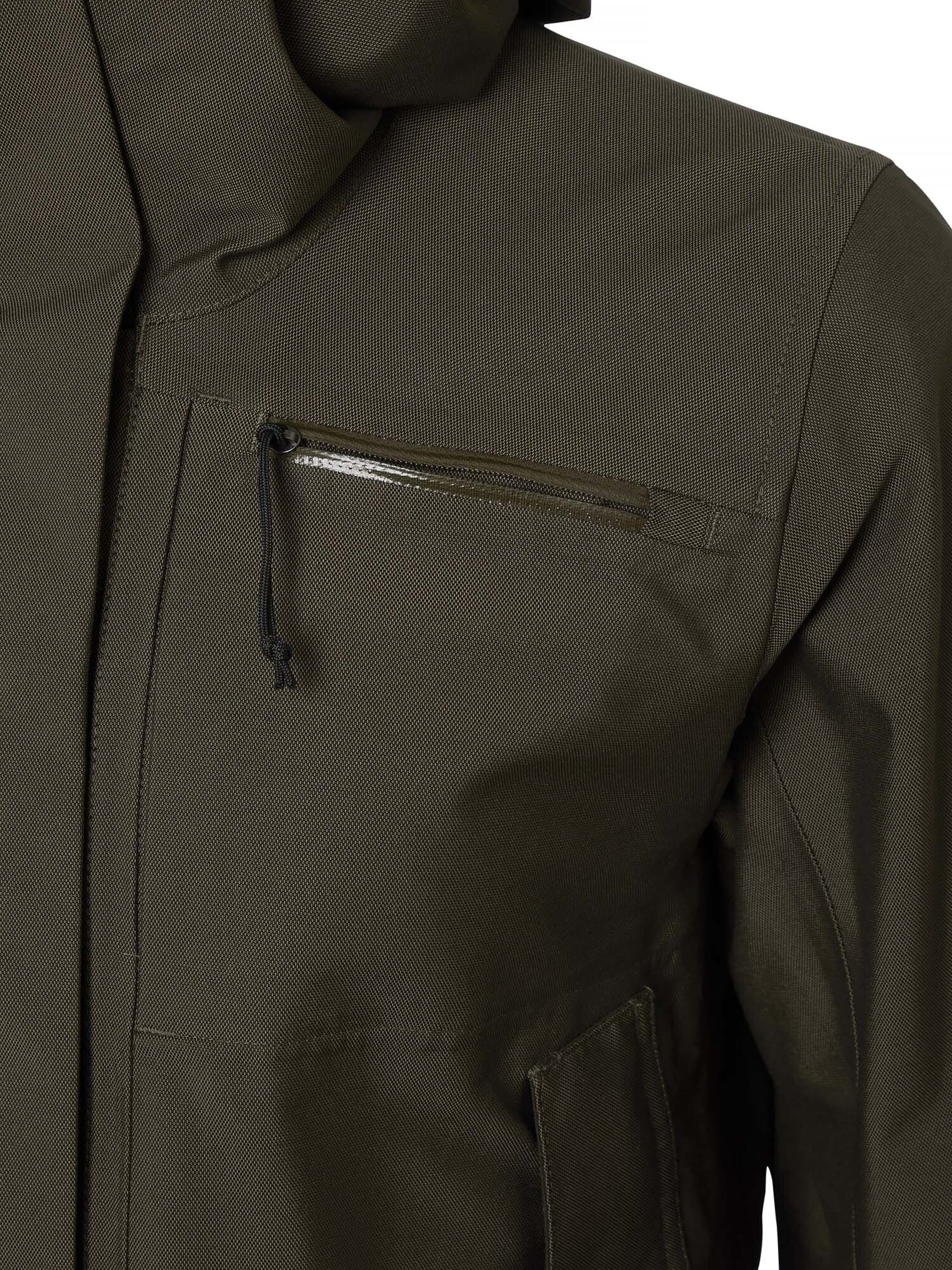 Jaktjakke til dame – Slitesterk, resirkulert polyester – Vanntett og vindtett Water Column: 20 000 mm Breathability: 20 000 g/m2/24h. Endeavor Chevalite Jacket 2.0 for dame er en smidig, vindtett og vanntett jaktjakke. Stoffet er slitesterkt, mykt og både vind- og vanntett, takket være vår egenutviklede Chevalite-membran og teipede sømmer. Jakken har flere praktiske funksjoner, inkludert romslige, fleecefôrede hengelommer du kan varme hendene i, romslige, fleecefôrede belglommer, doble radiolommer med vannavvisende glidelås. Bak de doble vindklaffene er det en Napoleon-lomme for oppbevaring av nøkler og andre verdisaker. Ventilasjonsfunksjon med glidelås under armene. På ryggen har jakken en lomme med plass til termos eller et lett klesskift. Toveis glidelås foran gir ekstra luftemuligheter. Alle glidelåsene er av merket YKK. Jakken har en ergonomisk passform med formsydde ermer og kan justeres både i nederkant og ved håndleddene. Jakkens romslige hette kan justeres slik at den slutter tett rundt hodet. Jakken er laget av resirkulert polyester.
