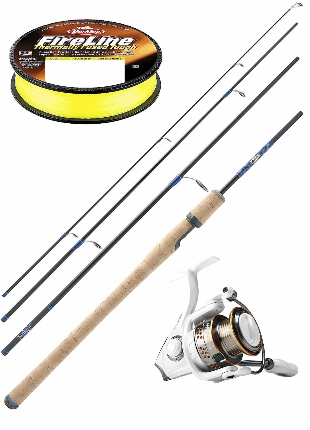 Komplett fiskesett for reise og allsidig fiske – med Twilight Travel-stang, Abu Max Pro snelle og den oppgraderte superlinen Berkley Fireline.