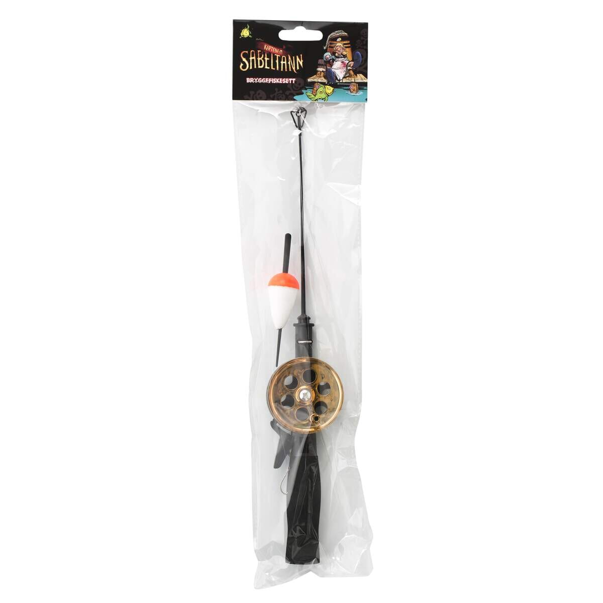Kaptein Sabeltann bryggefiskesett lar barna prøve seg på spennende bryggefiske. Settet består av fiskestang, sene, dupp og krok. Kroken kan foreksempel agnes med makrellbiter eller rekerbiter. En voksen bør hjelpe til med dette så man unngår krok i fingeren.