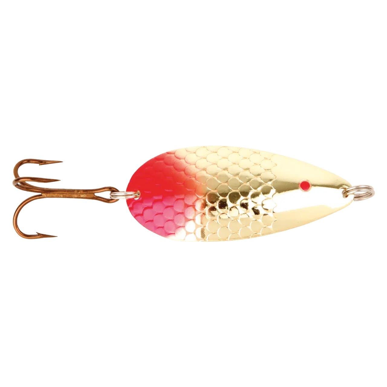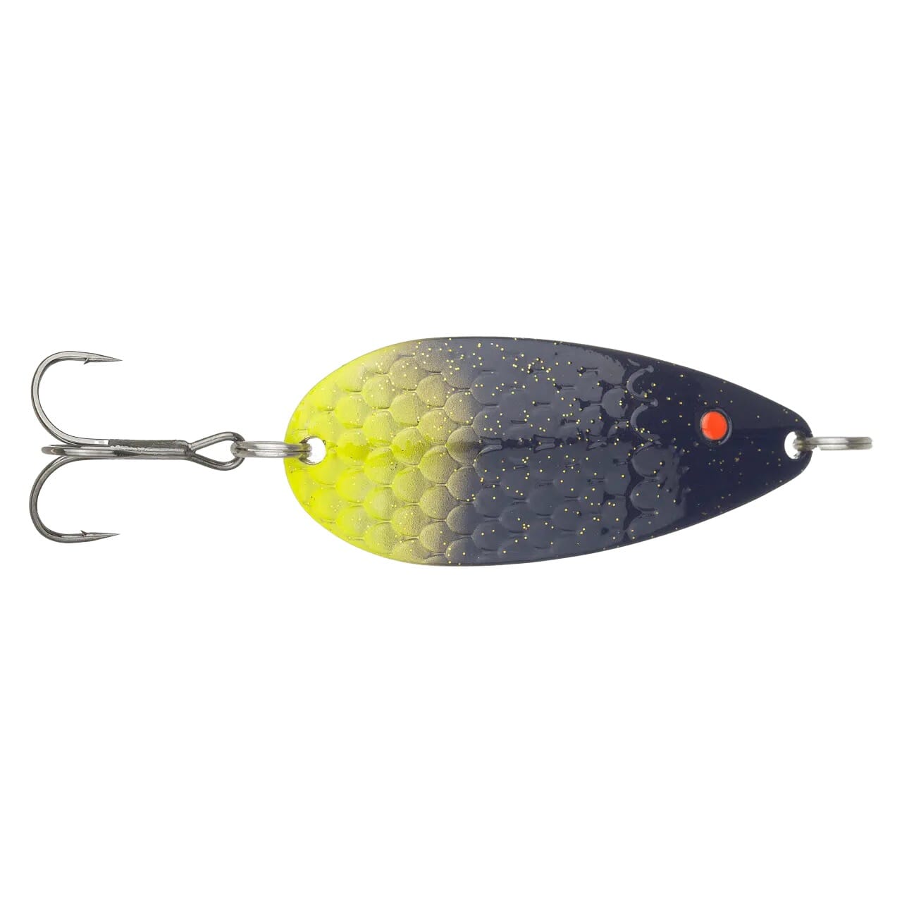 Dette er en velprøvd gammel skjesluk til laks hvor moderne fargesetting og overflatebehandling kombinerer det beste fra to tider. Den store buede overflaten graver seg ned i strømmen mot bunnen, der laksen har sin