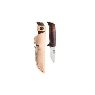 Hos Helle tar vi læring seriøst. Spire - den minste kniven i vår nye serie startknivar - er laga med tanke på dette. Dette er ein kniv som inviterer til bruk, læring og mestring, men samstundes vektlegg at ein kniv er er eit verktøy som krev respekt. Ein kniv som sår ei spire som kan gro vidare til større utfordringar. Spire er ein liten kniv designa etter mange av dei samme prinsippa som Helle vektlegg når vi lager knivar for større hender. Skaftet er laga med tanke på ergonomi og passform - det viktigaste med eit skaft er at ein skal ha eit godt grep. Her får små hender plass til fire fingrar med god margin og voksne hender får god plass til tre. Fremst mot bladet er det integrert ein betydeleg fingerstoppar i det olja skaftet av vestnorsk bjørk. Bladet er laga i knivstålet 12C27, og er lite og skarpt, slik at sjølv uerfarne brukarar skal føle på kontroll, mestring og glede ved bruk heller enn den frustrasjonen som sløve eller for store knivar fører med seg. Tuppen er runda, men ikkje butt. Designet er slik at fokuset skal vere på å lære seg å bruke kniven skikkelig. Kniven kjem i ei lærslire i naturellær som er prega med ein illustrasjon av ei plante som spirer. Slira er designa med både eit hakk og ein trykknapp som sikrar at kniven sit godt fast. Spire er ein kniv som inviterar til seriøs bruk og læring. Den har difor ikkje noko parerstang, ukomfortabelt grep, sløv egg eller butt tupp som mange andre startknivar har. Det er fordi nye brukarar skal lære seg å bruke kniven skikkeleg, og respektere at det er eit verktøy som krev kunnskap og konsentrasjon. Dette meiner vi ein gjer best om ein blir lært opp av andre med knivkunnskap, slik at ein med tid og stunder kan gro vidare til ein større kniv og sende kunnskapen til neste generasjon.