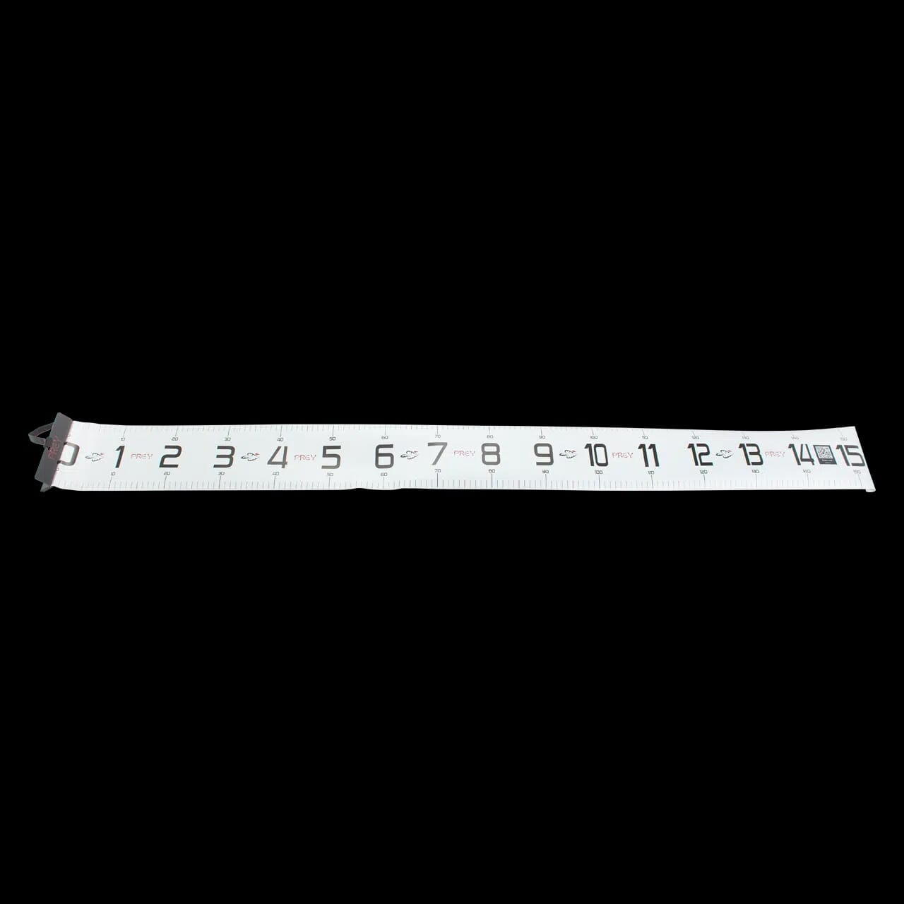 Prey sitt målebånd er laget for at du skal kunne måle fangsten din på en sikker og nøyaktig måte. Båndet er hele 25 centimeter bredt og 150 centimeter langt. Det er laget i solid seilduk, og er utstyrt med en høy kant i hardplast ved en-centimetersmerket. Her plasseres snuten på fisken du skal måle. Båndet kan enkelt rulles sammen og låses i sammenrullet forfatning med borrelåsen ved 150-centimtersmerket. Prey-målebåndet er ellers utstyrt med en QR-kode som leder deg rett til en artikkel med info om både minstemål, rødlister og fredninger av norske fiskearter. Stadig flere fiskekonkurranser fokuserer nå på centimeter fremfor kilo, så et godt målebånd er et must for alle konkurranseglade fiskere. Det kan også være nyttig å vite hvor lang fisken du får er, både med tanke på minstemål og for egenstatistikken sin del.