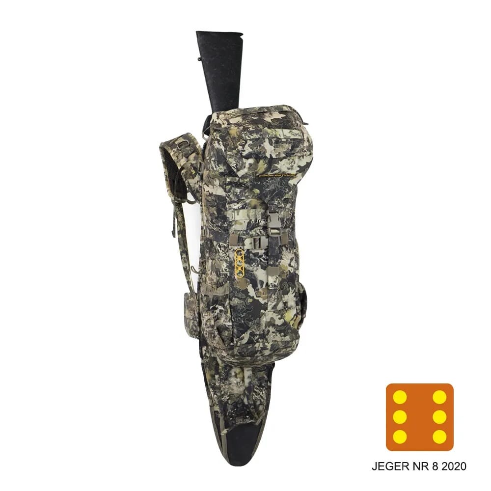 H2 Gunrunner - en lettvektssekk hvor du alltid har enkelt tilgang til våpenet. H2 Gunrunner er utstyrt "Backscabbard", et patentert festesystem for å plassere et våpen i sekken. Med våpenet plassert i festesystemet har du hendene fri under forflytning samtidig som våpenet er lett tilgjengelig. Gunrunner er også utsyrt med kompresjonsreimer for feste av vilt eller utstyr og hoftebelte for stabilisering. Stor lomme i lokket med plass til utstyr som bør være lett tilgjenglig. Sekken har lomme på hver side for drikkeflaske og den er klargjort for drikkesystem. Justerbar rygglengde. Volum: 23 liter. Vekt: 1,6 kg.Farge: Mountain.