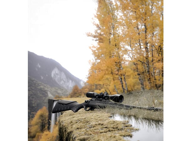 Skjefte og justerbar kinnstøtte. Perfekt ergonomisk syntetisk skjefte som er forsterket med glassfiber. Dette gir en kombinasjon av et lett og slitesterkt skjefte. Enkel skrumekaniske på kinnstøttejustering i høyden, med "klikk-klikk" funksjon.