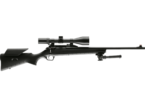 Monza Bolt Action Synthetic .308 Win 51cm, Adjustable, Picatinny, M14x1. Monza har alt å tilby av det du forventer av en moderne rifle. Enkel, lett og pålitelig design. Brukervennlig sluttstykke som beveger seg i låskassen på en perfekt måte, for å sikre best mulig oppfølgingsskudd. Våpenet leveres i medfølgende futteral - Integrert picatinny skinne med integrert baksikte, 51cm ferdig gjenget løp for lyddemper i M14x1, justerbar kinnstøtte, god sluttstykkegang, god sikring og et godt avtrekk. Vekt 3440 gram. Den kan demonteres i felten uten bruk av verktøy og er klar til å fungere i forskjellige scenarier.