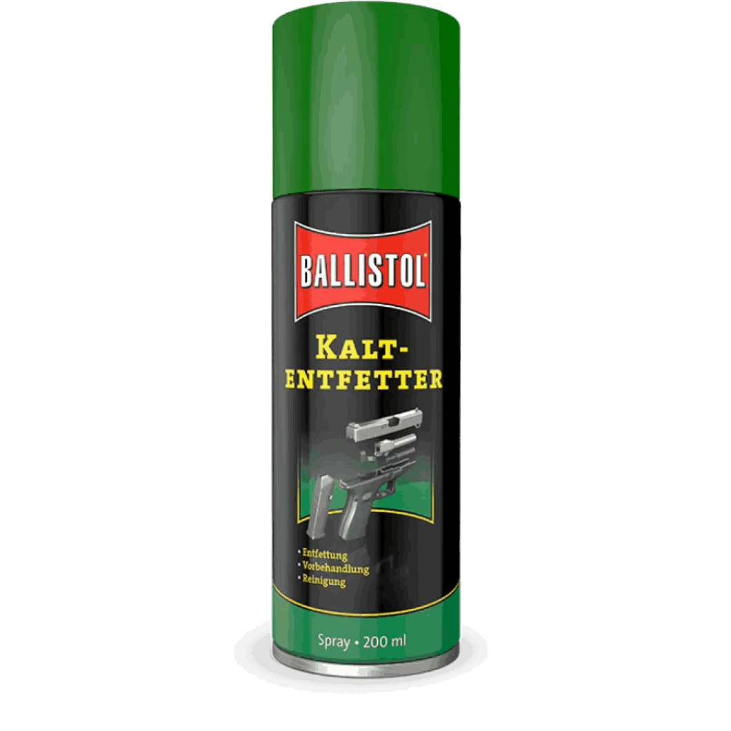 Ballistol Robla avfetter spray, 200ml. Ballistol Klever våpenpleieprodukter har vært i salg i over 100 år og er fortsatt blant de mest populære. Dette er produkter som både konkurranseskyttere og jegere bruker for å få et velfungerende våpen. Ballistol avfetter spray brukes for å fjerne rester av gammel olje, kruttslam etc. i våpenmekanismer. Spray på - la det renne av, enkelt og greit. Ideell til bruk på mekanismer på halvautomatiske våpen, sluttstykker på boltrifler, haglemekanismer, håndvåpen, etc. Også anbefalt brukt før hurtigbrunering. nneholder: 200 ml.