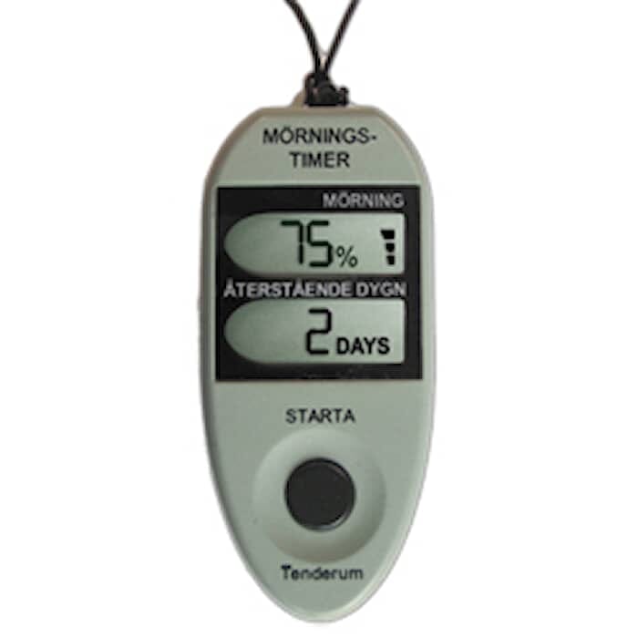Den bærbare mørningstimeren er praktisk å ha med seg, spesielt når du henger et dyr til mørning. Den viser kontinuerlig mørningsgraden i prosent og beregner hvor mange dager som er igjen til kjøttet er fullstendig mykt og klart til bruk.