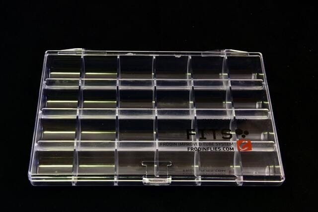 Frödin Fits Organizer er et praktisk organiseringssystem designet av Mikael Frödin, en erfaren fluefisker og fluebinder. Dette organiseringssystemet er ideelt for fluefiskere som ønsker å holde verktøyene og tilbehøret sitt ryddig og enkelt tilgjengelig. Fits Organizer er laget med tanke på funksjonalitet og brukervennlighet, slik at du kan fokusere på binding uten å måtte lete etter utstyret ditt. Passer til cones, beads, tubes. 24 rom med avrundet bunn som gjør det enkelt å plukke ut det man trenger.