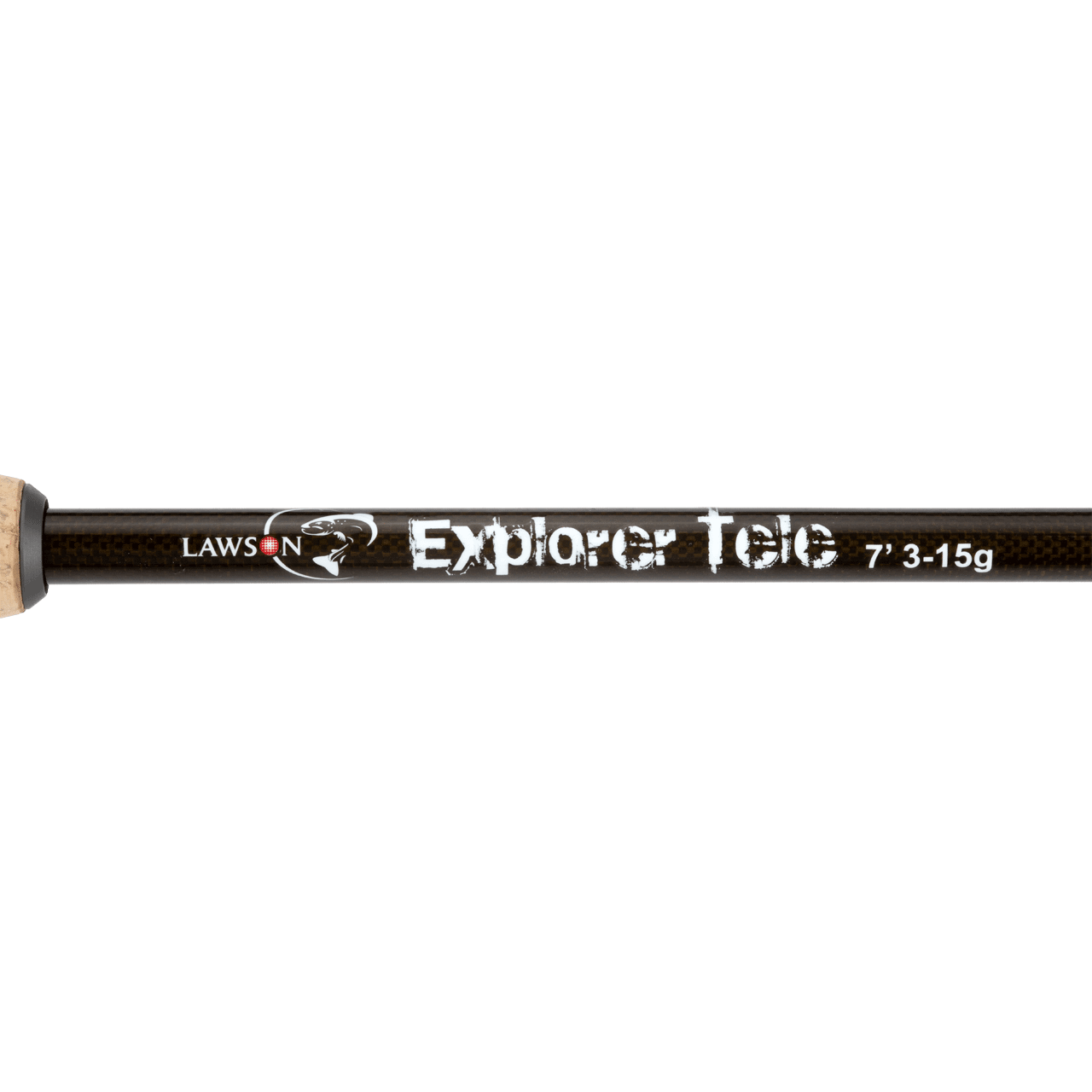 Etter nærmere to års utvikling er endelig Lawson Explorer Tele her! Målet med denne stangen var å lage en teleskopstang som ikke føltes teleskopisk, med kort transportlengde, lav vekt og med en spenstig aksjon som kunne erstatte de flerdelte stengene. Med andre ord: Å utvikle et godt verktøy til fiske, som er lett å ta med seg på tur eller bare å ha liggende i bilen – alltid klar å for et nest siste kast! Explorer Tele er produsert i en olivengrønn klinge av spenstig og lett 24-tonns karbonmateriale, utstyrt med SIC-lettvektsteleskopringer, et slankt snellefeste og med kork av god kvalitet. Beskyttelseshette og futteral følger også med denne turkameraten, slik at stangen ikke blir skadet under transport.
