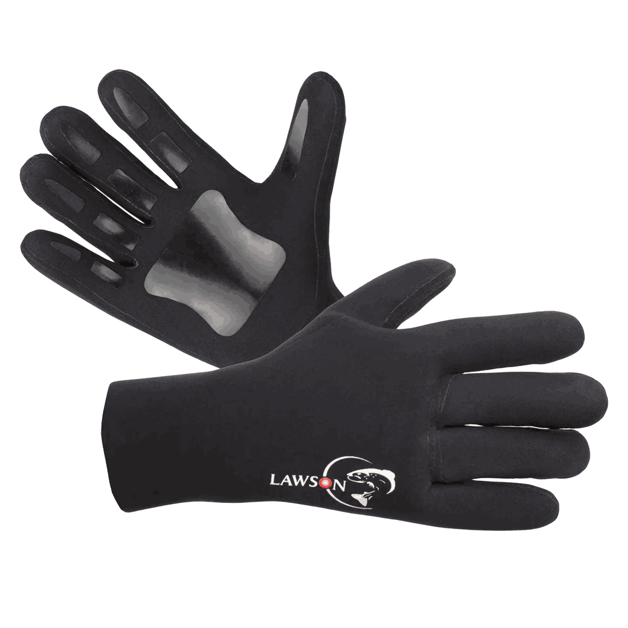 Lawson sine neoprenhansker er blant de tynneste (2 mm) og mest behagelige vanntette neoprenhanskene en finner i dagens marked. De ultratynne hanskene sitter perfekt på hendene og gir god følsomhet i aktivitet, i tillegg til å beskytte mot vær og vann. Hanskene har sveisede sømmer som er forsterket utvendig . Den gummibelagte overflaten sørger for et fast og godt grep i fiskestangen, kniven eller hva det måtte være.