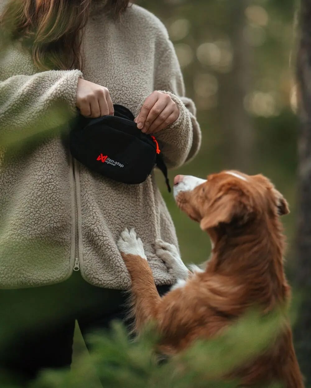 En midjeveske med integrert hundeavfallsposedispenser for å bære på alle små eventyr med hunden din.
