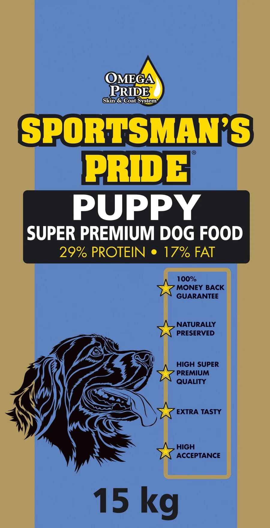 Sportsman's Pride Puppy Blå - 15kg: Inneholder høyt nivå av protein og fett av meget høy kvalitet for å gi valpen en best mulig start i livet. Også velegnet for drektige tisper for å gi styrke til fødselen, samtidig gir det tispen overskudd til valpene.
