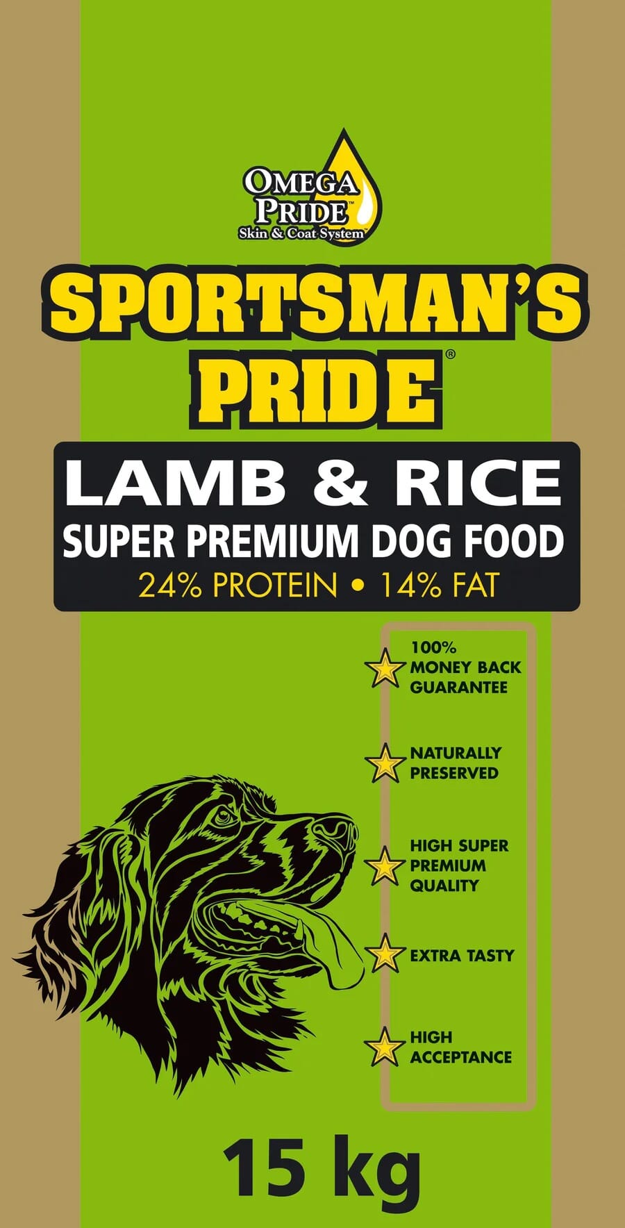 Sportsman’s Pride Lam & Ris: Super Premium hundefôr for voksne hunder med følsom mage eller allergi. GMO-fritt, uten soya, hvete eller sukker – kun toppkvalitet!