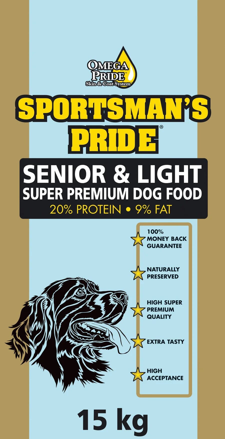 Sportsman's Pride Senior Lyse blå - 15kg: Et komplett fullfôr til senior hunder og hunder med redusert energibehov. Også utmerket til overvektige hunder og hunder som har lett for å gå opp i vekt.